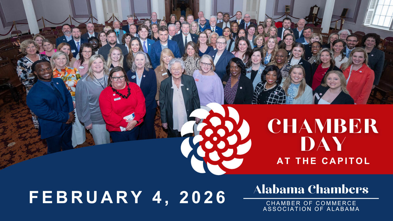 The Chamber of Commerce Association of Alabama invites you to participate in the 2nd Annual Chamber Day at the Capitol, a premier gathering of more than 120 chamber professionals, volunteer leaders, elected officials, and business and community leaders from across the state.